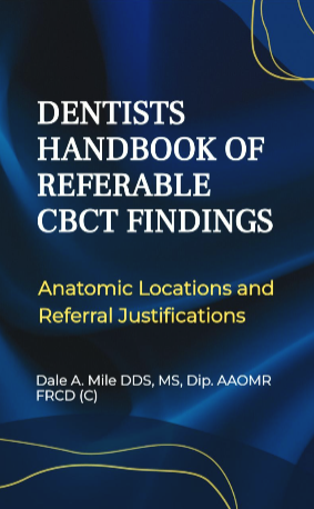 Dr. Miles is proud to announce his latest 28 page ebook “Dentists Handbook of “Must Refer” CBCT Findings”. From the preface, you, my colleagues in dentistry, who have adopted Cone Beam CT imaging must re-familiarize or even relearn your head and neck anatomy since you now are faced with anatomic structures and pathology visualized in three claims of section. You must train yourself to look at all of your scan data in all things of section and identified pathology that is often present in your scan. This manual is provided to help you understand important, referral will findings that you are obligated to identify and act upon. The important findings identified in this manual are found in the anatomic locations captured in your CBCT volumes. By reviewing the anatomic regions and viewing the important findings, most often medical, that you will encounter I hope I have provided you some guidance for delivering better care to your patients. They will thank you for the early detection of these findings and appropriate referral for medical management. Buy now!